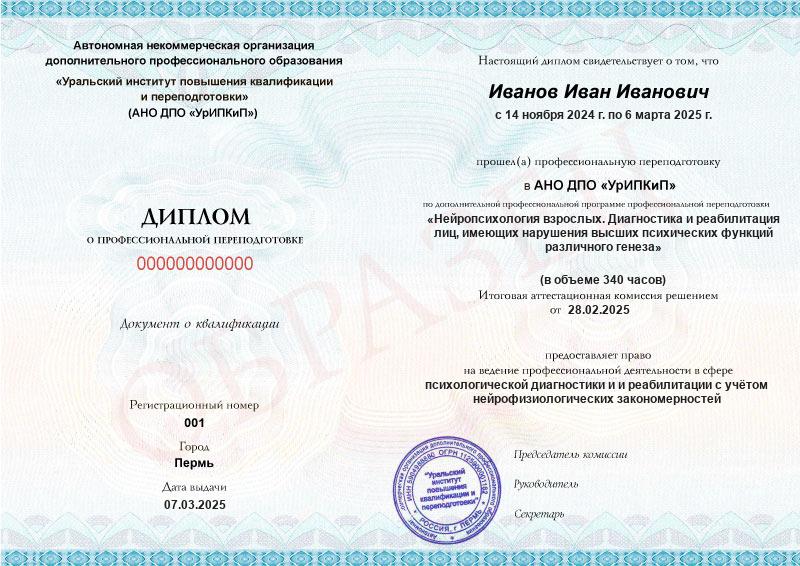 Диплом о профессиональной переподготовкеДокумент подходит для трудоустройства в частные компании и государственные структуры на всей территории РФ